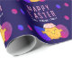 Cute Easter Chick and Eggs Happy Easter Holiday Wrapping Paper. Cute chick with cracked eggshell on the head, blue and purple Easter eggs. Add your name and text.