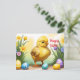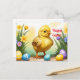 Celebrate Easter and the moments of spring happiness with this cute adorable little chick standing near decorated eggs.