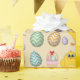 A cute Easter chick pattern with Easter eggs and Easter baskets. Easter eggs are coloured and patterned in pastel colours. An ideal design for Easter gifts and Easter Spring decor.