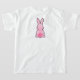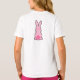This is a cute & funny Easter t-shirt featuring a girl in a pink bunny costume, with two colourful Easter eggs on each side. A floral background in blue colour. At the top, a text that reads "Official Egg Hunter." You can personalise this t-shirt for your kid by adding her name at the bottom of this design. On the back, a cute pink stripped bunny. This girl's accessory would be great to wear during an Easter egg hunt, or an Easter holiday party! Get one for your little girl.