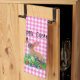Decorate your kitchen for Easter and the spring season with this darling towel. This pink and white gingham towel features a darling Easter Rabbit collage with coloured eggs, green grass, and tulip flowers. The bunny design in the centre is one of my collages, each element was set by hand before being grouped. This kitchen towel has a matching tablecloth and napkin view them in my Easter collection.