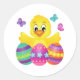 Cute Easter Yellow Chicken with Colourful Eggs Classic Round Sticker