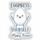 Celebrate Easter with a touch of humour! This adorable "Eggpress Yourself" sticker features a cheerful cartoon egg and a fun pun, making it a perfect addition to your holiday decorations, gifts, or crafts. Ideal for laptops, water bottles, notebooks, and more, this custom-cut vinyl sticker adds a playful charm wherever you stick it. A great choice for pun lovers, egg enthusiasts, and anyone who enjoys festive, lighthearted designs!