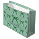Add a touch of charm and sophistication to your gifts with this Cute Elegant Green Bow Pattern Large Gift Bag. Featuring a delicate green bow design on a high-quality, durable material, this bag exudes elegance while maintaining a playful aesthetic. Its spacious interior allows for easy wrapping of larger gifts, making it perfect for birthdays, weddings, baby showers, and other special occasions. The sturdy handles ensure comfortable carrying, while the stylish pattern adds a refined finishing touch to your present.
