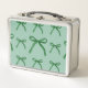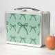 This Cute Elegant Personalised Green Bow Pattern Metal Lunch Box is a stylish and practical way to carry your meals in elegance. Featuring a charming green bow pattern, this lunch box adds a touch of sophistication to your lunchtime routine. Made from durable metal, it offers a sturdy, long-lasting design to keep your food fresh and secure. Personalise it with your name or initials for a unique, thoughtful touch. Perfect for students, teachers, or professionals, this lunch box is not only a functional accessory for carrying snacks and meals but also a chic statement piece to brighten up your day.