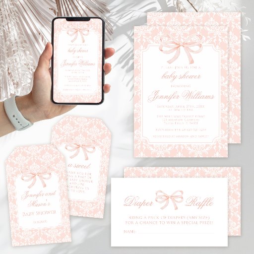 Cute pastel pink bow ribbon boho baby girl showerDesigned by Ramune Freze