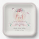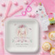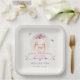 Cute Elegant Pink Floral Bunny & Birds Baby Shower Paper Plate