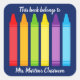 Cute custom crayon stickers personalised for a classroom, child, or teacher. This Book Belongs To...customise with your name or a teacher's class information to put inside of books. Perfect gift for an elementary school teacher, especially for kindergarten.