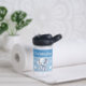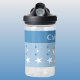 This water bottle features a cute elephant with stars in the colours blue and white.