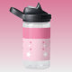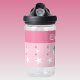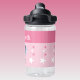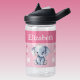 This water bottle features a cute elephant with stars in the colours pink and white.