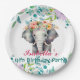 Cute elephant animals jungle Floral Birthday party Paper Plate