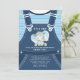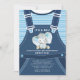 Adorable elephant Baby Shower Invitation featuring the cutest pair of baby overalls with a sweet boy elephant. Unique Boys baby shower invite for a elephant theme baby shower for a baby boy.