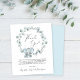 Cute baby boy shower thank you featuring "Thank You" in a stylish script with a heart swash and a watercolor of a blue baby elephant in a wreath of eucalyptus greenery. Personalise your thank you message and add your name(s) in a signature script, or leave blank for a handwritten note.