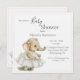 Adorable watercolor hand drawn baby elephant in a little white frilly dress adorable baby shower invitation. The simple soft colours sets the tone for a sweet themed baby shower. Such a sweet and simple invitation for that special event.