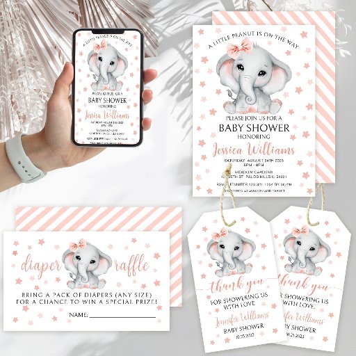 Cute pink elephant girl baby showerDesigned by Ramune Freze
