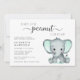 A cute gender-neutral baby shower invitation featuring "A Sweet Little Peanut Is On Its Way" in soft grey typography and a stylish swash script and a pastel mint green watercolor of a baby elephant. Add the mother's name and shower details in simple modern grey lettering.