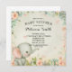 An adorable vintage baby shower invitation featuring an elephant and pink flowers.