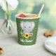 Elephant Baby Shower paper cups from Ricaso ... with yellow and white spotty pattern back detail .. a pretty animal, flower and polka dot feminine design for the mum to be - available in different colour options