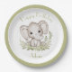 Birthday party paper plates with a Cute Elephant all in green for boy's Birthday. Easily personalise the text so you can use it for any age :).