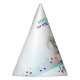Cute Elephant in Party Hat with Balloons, Horn and Confetti Celebrates a Birthday.