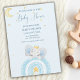 Announce the joy of a little one on the way with our adorable Baby Elephant Baby Shower Invitation. Against a soothing light blue background, a charming baby elephant stands atop a rainbow, accompanied by a crescent moon and stars, creating a whimsical and heartwarming scene. The dusty blue text adds a touch of sweetness to this delightful invitation. This carefully crafted design captures the essence of innocence and anticipation, making it the perfect choice for celebrating the upcoming arrival of your bundle of joy. Invite your loved ones to share in the excitement with this endearing Baby Elephant Baby Shower Invitation, a precious introduction to a joyous occasion.
