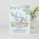Splashed with fun and laced with cuteness, our 'Blue Elephant 1st Birthday Party Invitation' is the perfect way to get the party started for your baby boy. The watercolor baby elephant in a party hat, surrounded by delightful bunting decoration and a tempting cupcake, not to mention the fabulous birthday balloon with the number 1, seamlessly blends charm and cheer. The design is easy to personalise and comes to life on a watercolor background, with a striped reverse adorned with blue florals. Make your little one's first year unforgettable with this adorable invitation.