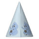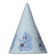 Party Hat with design with an illustration of a blue elephant with a brown mouse; illustrated by Radka Kavalcova / MaxiHarmony