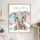 Cute baby Elephant for baby's nursery or a child's room. The art print says "Dream Big", but can be changed to a child's name or any words you want. Great gift for mum to be as her baby shower gift.