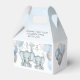 This adorable favour box features blue and grey boy elephants with balloons and confetti and a silver cross. Easily customised for your event by clicking personalise. Perfect for your party guests!