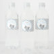 Modern grey and light pastel blue elephant themed baby shower water bottle labels. Perfect for a little boy baby shower.