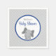Modern grey and navy blue elephant themed baby shower paper napkins. Perfect for a little boy baby shower. Easily personalise!
