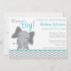 Cute Elephant Chevron Teal Baby Shower Invitation