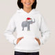 An adorable holiday animal kids hoodie for your child to wear to a holiday party. A beautiful grey elephant wearing a red Santa hat and looking happy about Christmas.