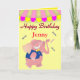 The name and text can be easily changed in this birthday card. Elephant characters. Bright and colorful. Great for boys or girls. Circus theme Cute Elephant Circus Personalized Custom Name