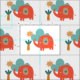 A cute simplistic red elephant pattern, with a teal cloud, yellow sunshine and tree motifs on a white background which can be changed to another colour if you wish.
