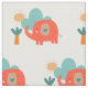Cute Elephant Cloud Tree Sunshine Pattern Red Teal Fabric