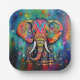 Cute Elephant Colourful Funky Mixed Media Animal Paper Plate