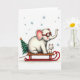 Cute Elephant Dog Sled Christmas Card Whimsical Il