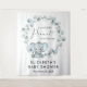 Cute baby boy shower welcome backdrop tapestry and photo prop featuring "A Sweet Little Peanut Is On His Way" in a mix of simple typography and a stylish script with a heart swash, and a watercolor of a pastel blue baby elephant in a wreath of sage green eucalyptus greenery. Personalise with the mother-to-be's name and shower date.