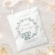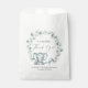 Cute gender-neutral baby shower favour bags featuring "A Sweet Little Thank You" in a mix of modern typography and a stylish script with a heart swash, and a watercolor of a pastel mint green baby elephant in a wreath of sage green eucalyptus greenery. Personalise with the mother-to-be's name and the shower date.