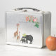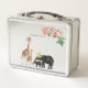 Cute Elephant & Giraffe Floral Girl Custom Name Metal Lunch Box