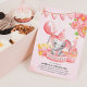 Cute pink elephant girl 1st birthday party invitation. Design features an adorable watercolor baby elephant wearing a party hat, fun bunting decoration with a yummy cupcake, a present and number one balloon. Simple first birthday party template which is easy to customise using the template provided. Watercolor background and striped back with pink florals.