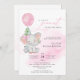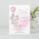 Cute Elephant Girl Balloon Baby Shower Invitation