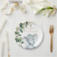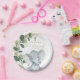 Cute Elephant Greenery Gold Leaves Christening Paper Plate