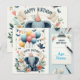Cute Elephant Happy Birthday Card - Balloons