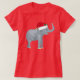 An adorable holiday animal women's t-shirt to wear to a holiday party. A beautiful grey elephant wearing a red Santa hat and looking happy about Christmas.