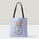Cute Elephant Peeking from Gingham Pocket Tote Bag