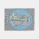 Cute and Fun Elephant fleece blanket. Blue and grey with personalised name. A cute grey elephant holding a yellow flower in it's trunk,