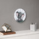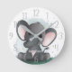 Cute Elephant personalised Gender Neutral Round Clock for mum to be to add to her baby nursery. Blue grey watercolor background, grey numbers and name, Perfect baby shower gift for baby girl. Matches the Dream Big Wall Art.