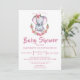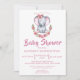 This adorable baby shower invitation for a baby girl features a white background with a sweet elephant decorated with colourful pink flowers. The back of the invitation has a light and dark pink animal print pattern. Easily customise your baby shower info with your name, date, venue, and other information.